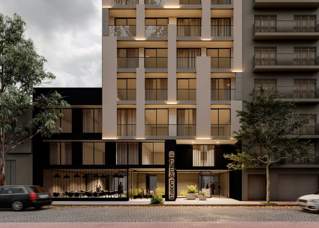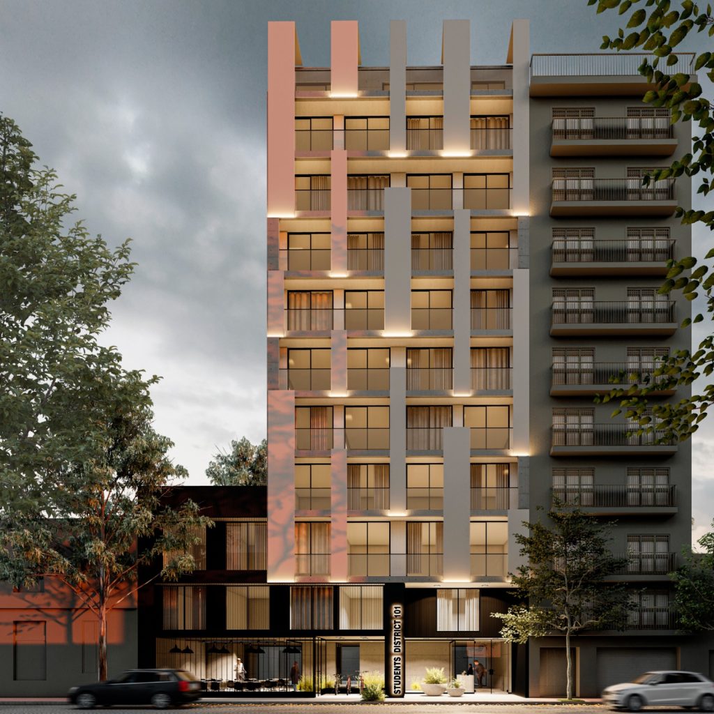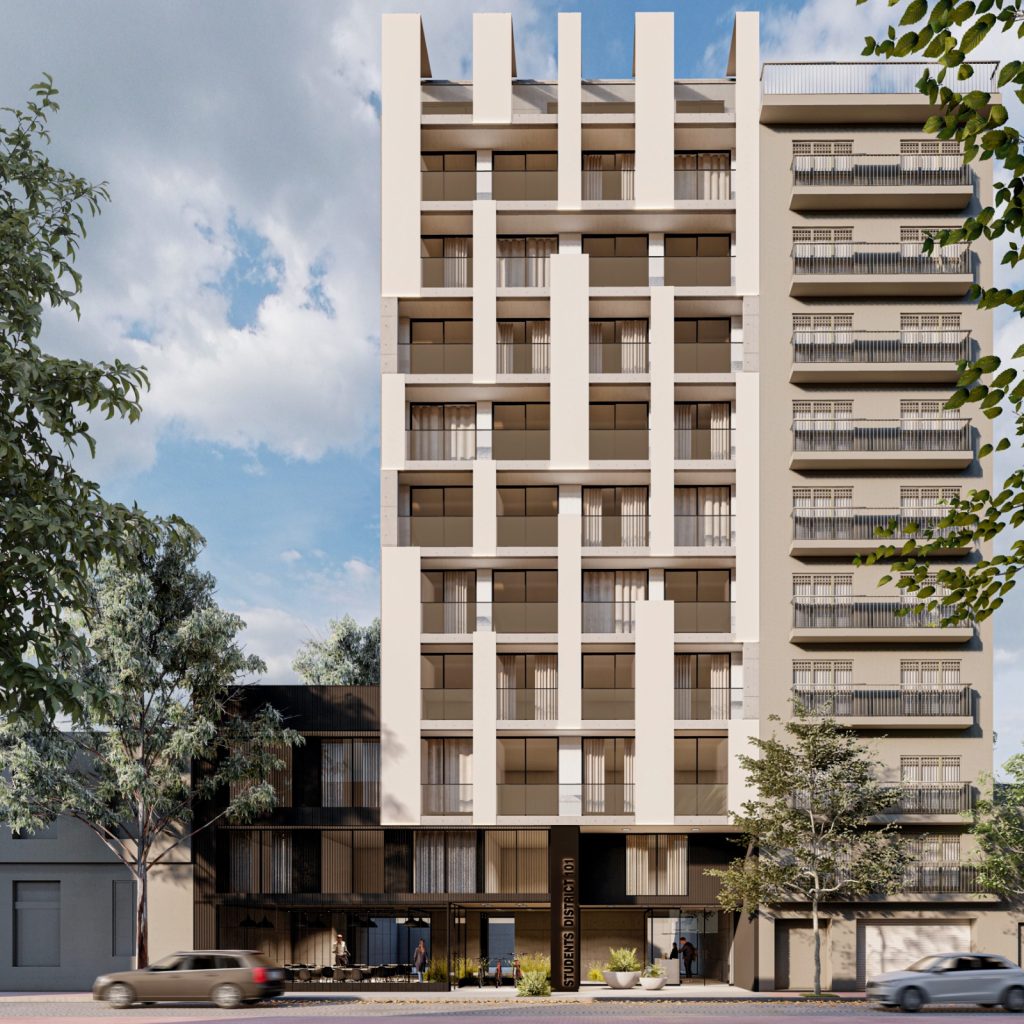 Students District 101 es un edificio funcional exclusivamente pensado para ofrecer a los estudiantes universitarios y profesionales nóveles, un espacio dedicado a brindarles todos los servicios orientados a sus necesidades específicas, así como también los complementos ideales para un estilo de vida único en la Ciudad Autónoma de Buenos Aires.